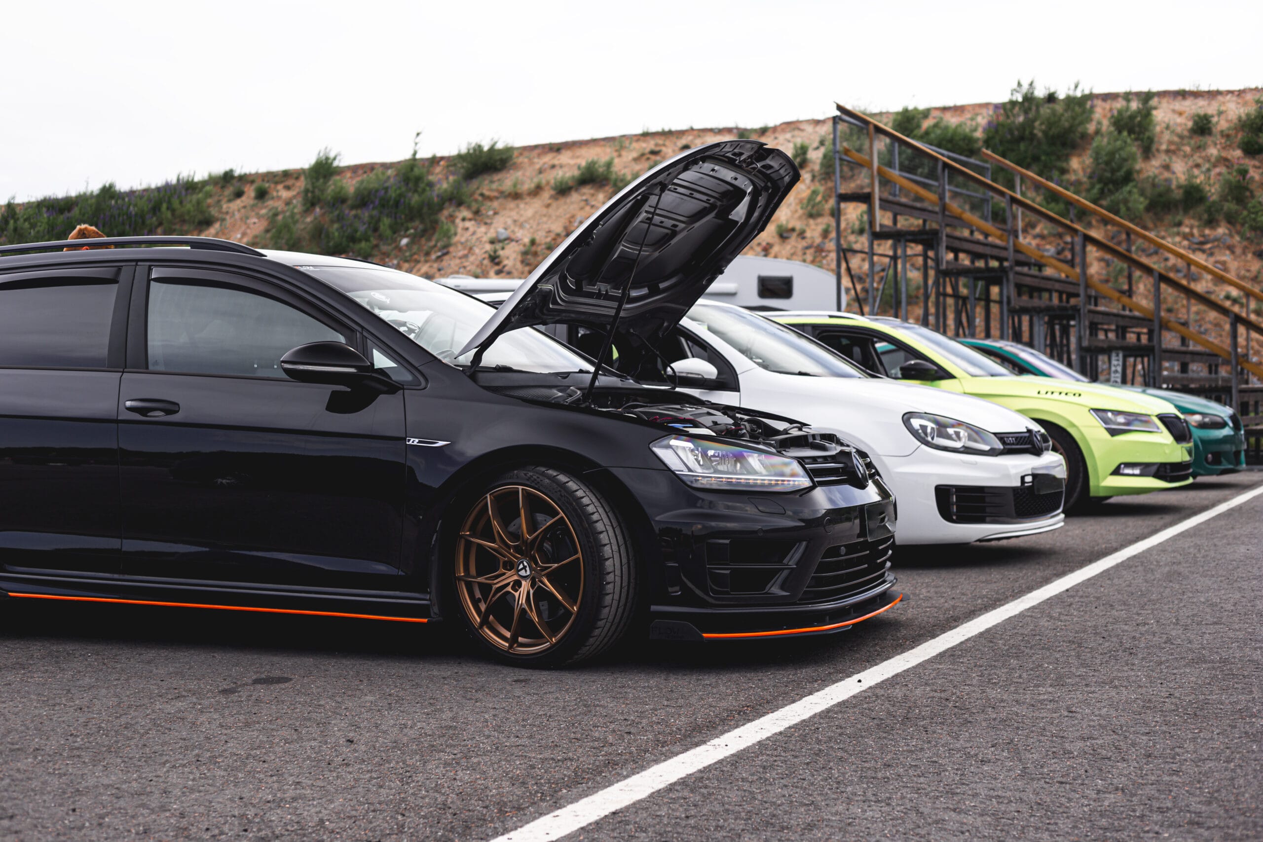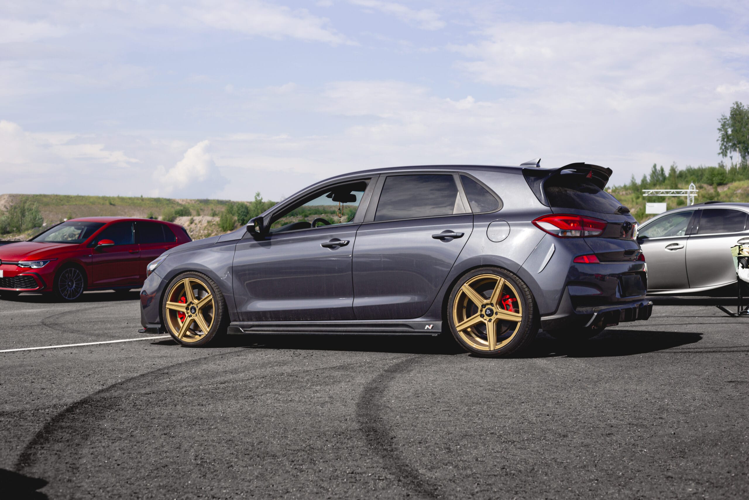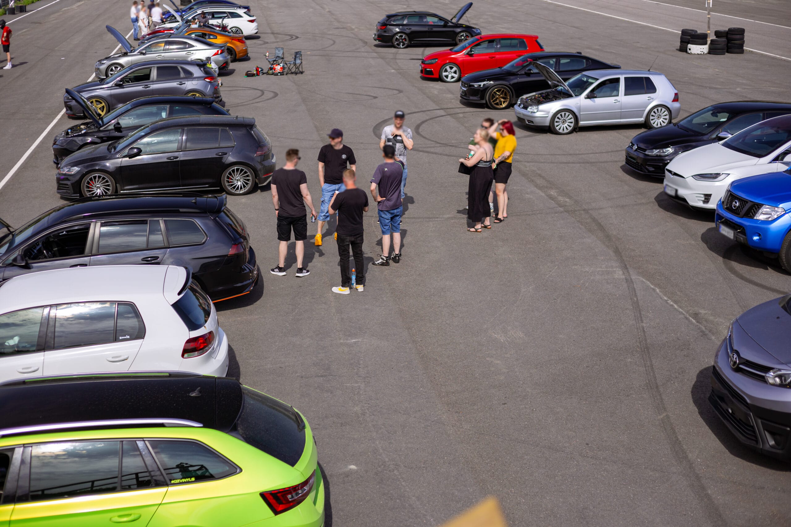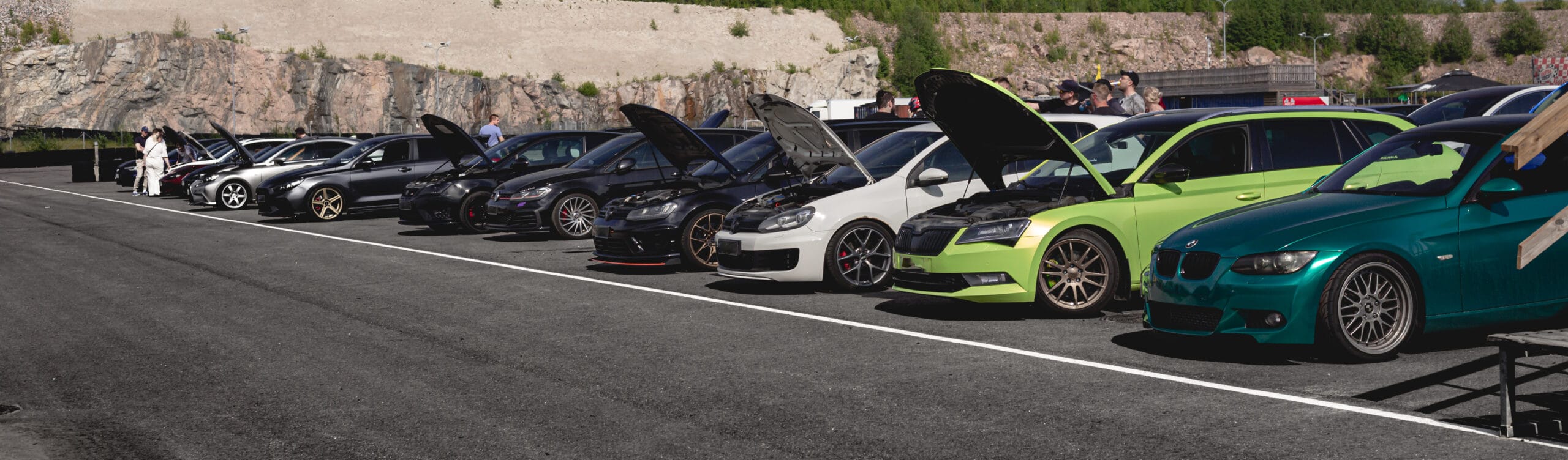 Osallistujamäärä oli aivan uskomaton! Melkein kaikilla osui kalenterit kohdilleen ja saimme mukaan myös muutamia vieraita. Kutsuvieraat, kuulostaa fiiniltä, mutta todellisuudessa olemme suhteellisen valikoivia porukassamme. Haluamme, että kaikki tulevat toimeen ja nauttivat yhteisolosta, radalla tietysti tärkeintä on myös se, että ajokokemusta löytyy jo ennestään, edes vähän. Tällä kertaa päädyimme tilanteeseen, jossa parhaimmillaan varikolla oli 30 autoa, mikä on reilusti yli 20 hengen porukalle kova juttu. Emme ole koskaan määrän perässä, mutta olemme todella iloisia, että kaikki kokivat olevansa tervetulleita paikalle.